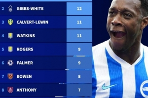24直播网4月22日讯 在本轮英超布莱顿3-0完胜切尔西的比赛中,维尔贝克替补破门。以下为本赛季英超中英格兰球员进球榜: