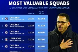 未进欧冠球队身价榜:切尔西有望占据前三 热刺两次曼联三次上榜
