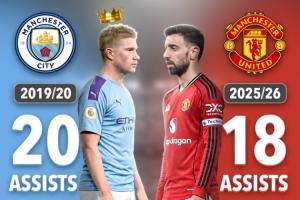曼联本赛季还剩5场英超,将分别对阵布伦特福德、利物浦、桑德兰、诺丁汉森林和布莱顿,B费很有机会打破这一纪录。
