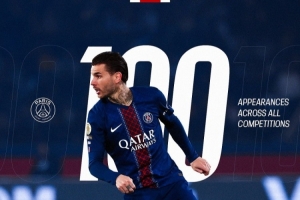24直播网4月23日讯 法甲第26轮比赛,巴黎圣日耳曼在主场迎战南特。本场比赛,卢卡斯替补登场,迎来巴黎圣日耳曼生涯百场里程碑之战。