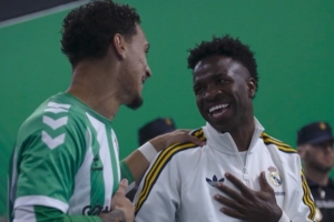 24直播网4月28日讯 据转播方DAZN透露,在皇马对阵贝蒂斯的比赛前,维尼修斯与安东尼进行了互动。