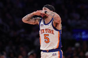 24直播网4月29日讯 NBA季后赛首轮G5,尼克斯半场64-48领先老鹰。