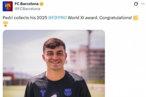 佩德里在此前入选了国际足联2025年度最佳阵容,但一直未能领取奖杯。他本赛季各项赛事为巴萨出战39场,贡献2球11助攻。