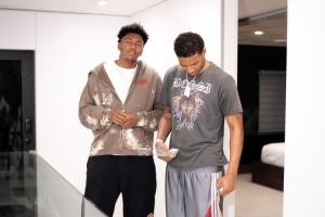 24直播网5月1日讯 奇才球员朱利安·里斯更新社媒,晒出了和鹈鹕新秀德里克·奎因一同度假的照片。