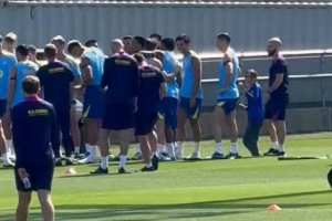 24直播网4月21日讯 据记者David Ibáñez报道,巴萨队友今日训练前祝贺亚马尔获奖。