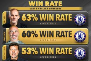 近6任切尔西主帅胜率: