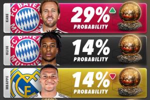 24直播网04月21日讯 Polymarket更新了金球奖得住概率,其中凯恩升至29%,奥利塞与姆巴佩14%并列第二。
