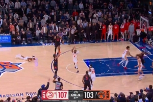 最后7秒,布伦森投进续命三分,唐斯对亚历山大-沃克掩护犯规漏吹;